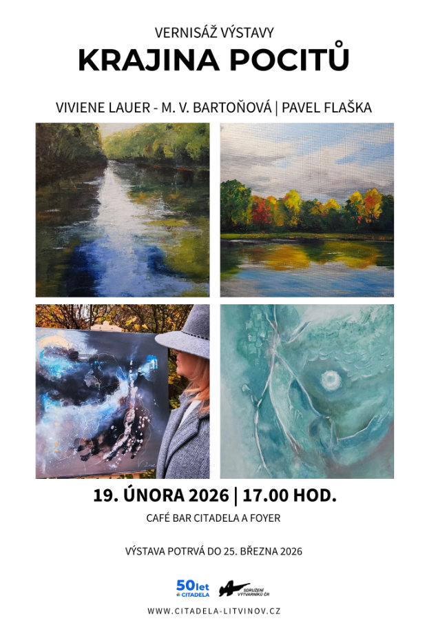 Viviene Lauer - M. V. Bartoňová a Pavel Flaška vystavují v Citadele Litvínov. Vernisáž výstavy se uskuteční 19. února 2026 v 17. hodin.