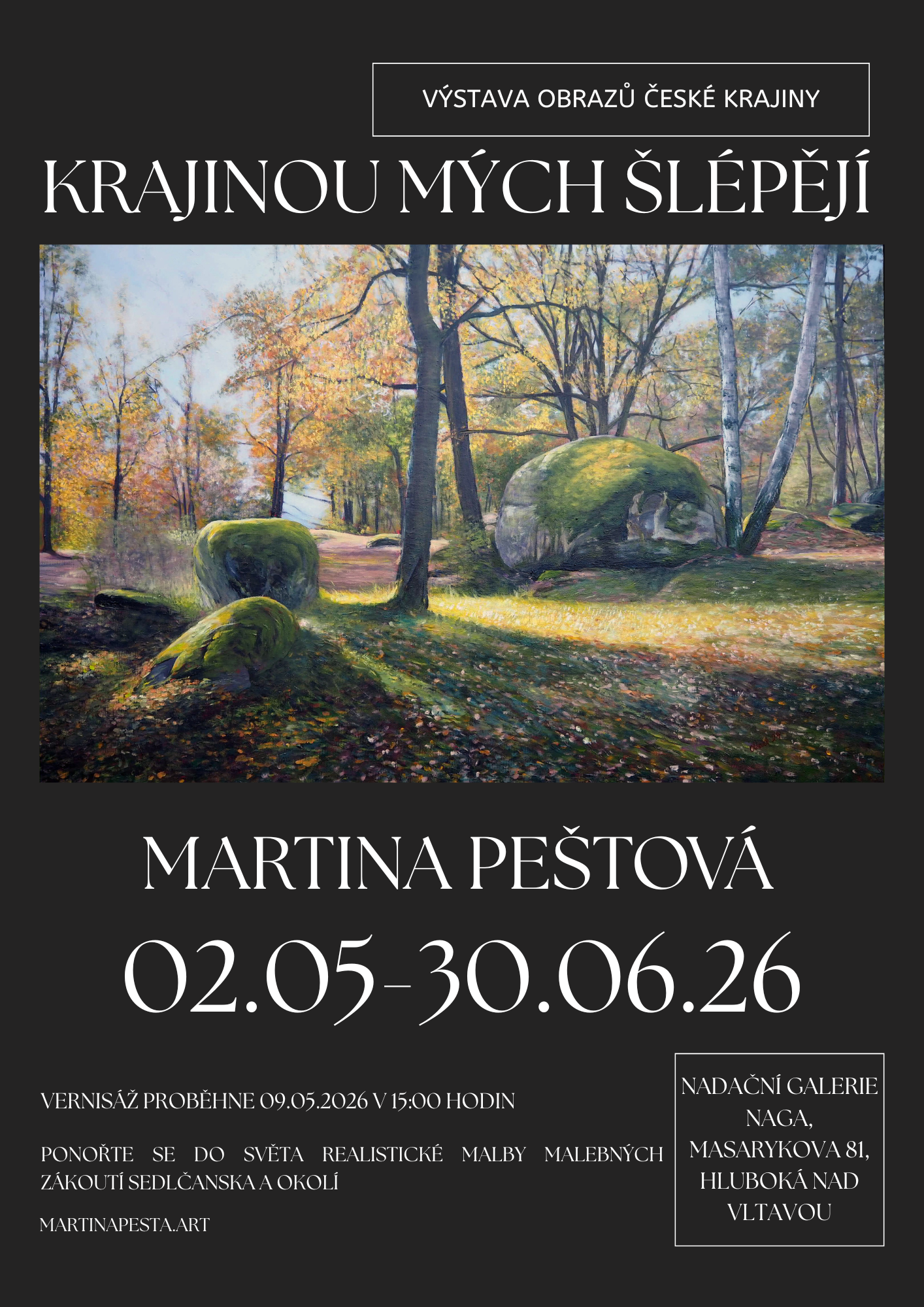 Vernisáž výstavy proběhne v sobotu 9. května v 15. hodin v Nadační galerii NAGA v Hluboké nad Vltavou.