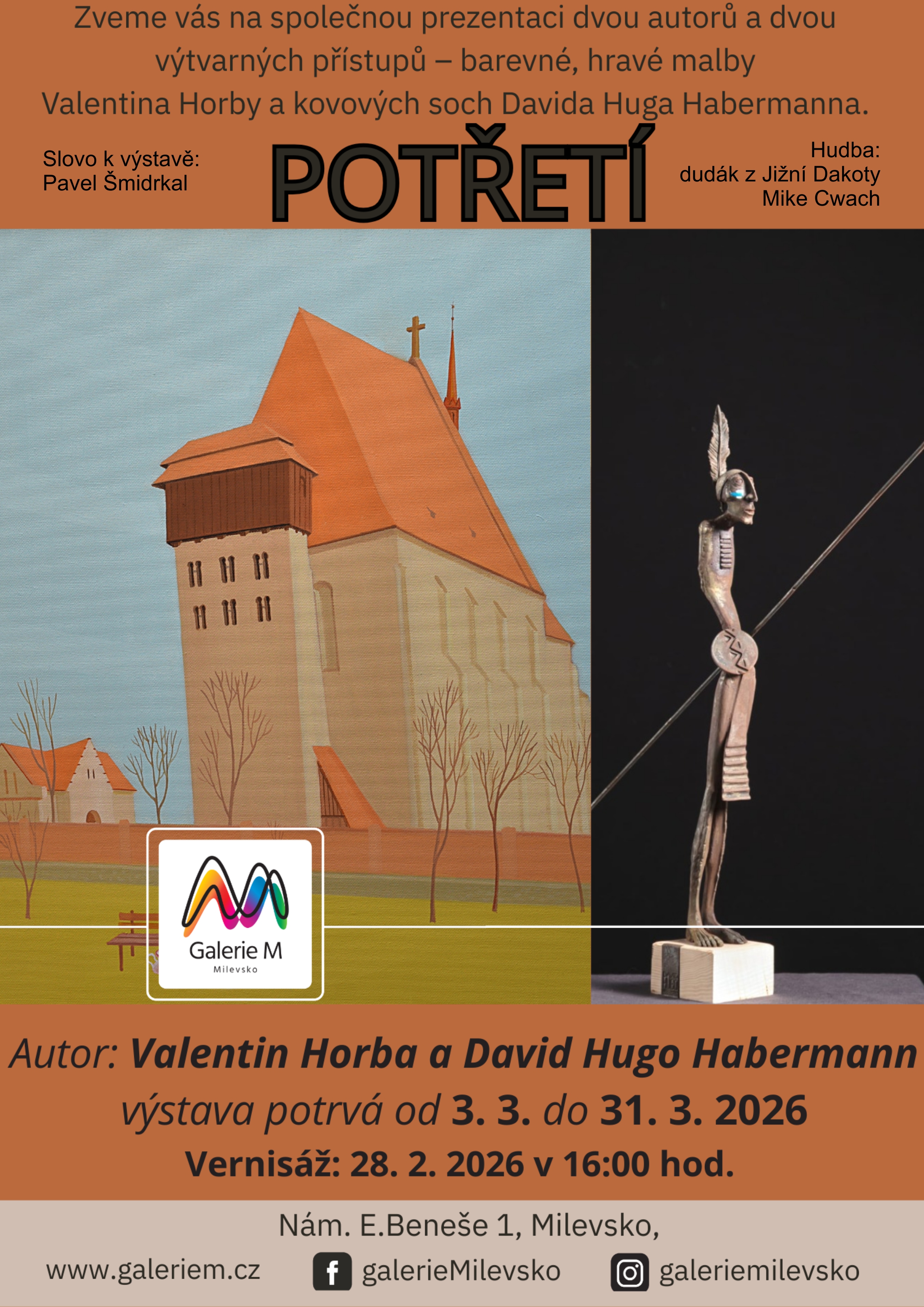 Zveme Vás na společnou prezentaci dvou autorů a dvou výtvarných přístupů - barevné, hravé malby Valentina Horby a kovových soch Davida Huga Habermanna. Společná prezentace navazuje na předchozí úspěšné výstavy a její název není náhodný - Valentin Horba s Davidem Hugo Habermannem se v Galerii M představují již potřetí.